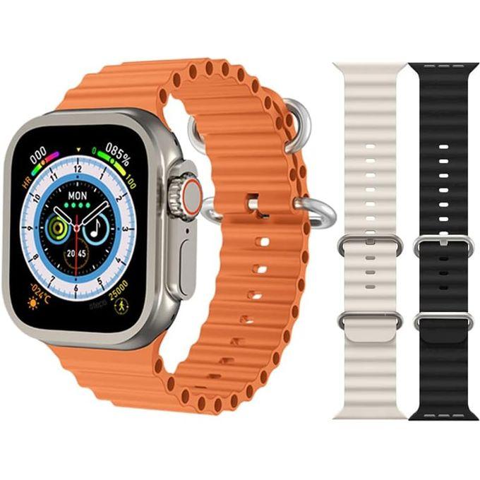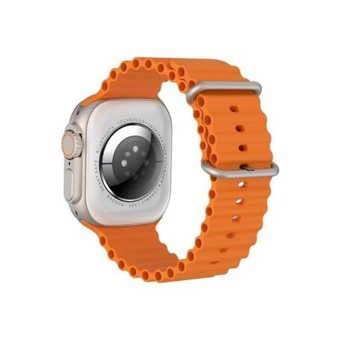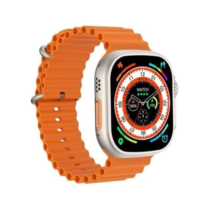 ساعة ذكية سمارت ووتش الترا، شاشة عرض كاملة كبيرة, شحن لاسلكي, تدعم اوضاع رياضية متعددة، متوافقة مع جوالات ايفون واندرويد، سوار سيليكون (برتقالي)