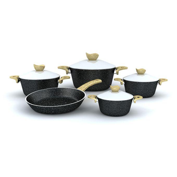 Lazord طقم اوانى طهى جرانيت برو - 9 قطع - اسود