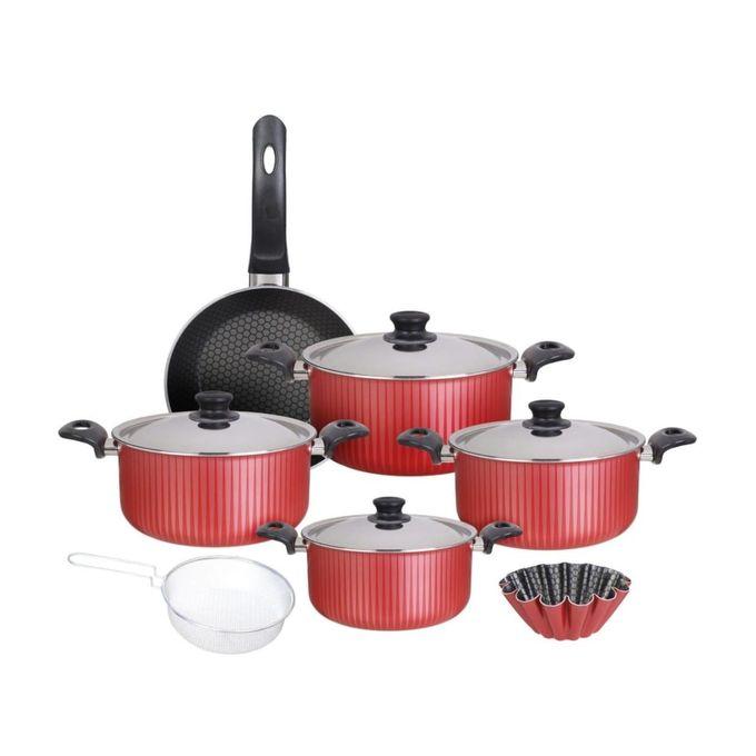 Trueval طقم حلل تيفال ، 11 قطعة - أحمر