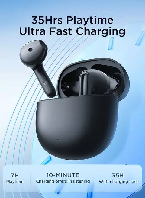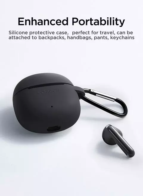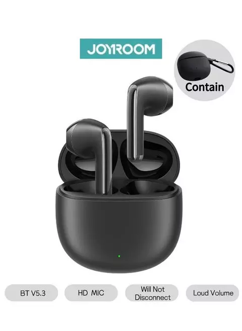 سماعات JR-FB1 داخل الأذن بتقنية بلوتوث 5.3 لاسلكية، نظام أسماء النطاقات، تقليل الضوضاء، 65 مللي ثانية، زمن استجابة منخفض، شحن سريع IP54 مقاوم للماء مع صندوق شحن وغطاء واقٍ أسود